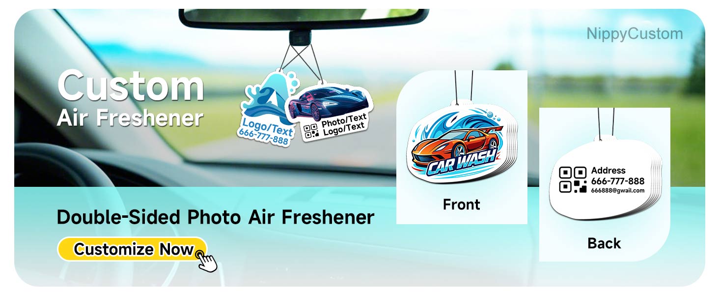 Freshen up your ride with a unique touch! Custom your air fresheners with text, picture or logos. Great gifts for auto shows, mechanics & car washes, wedding or gift for friends and family. Our personalized car air fresheners are the perfect way to add personality and keep your car smelling great. Here’s why you’ll love them: