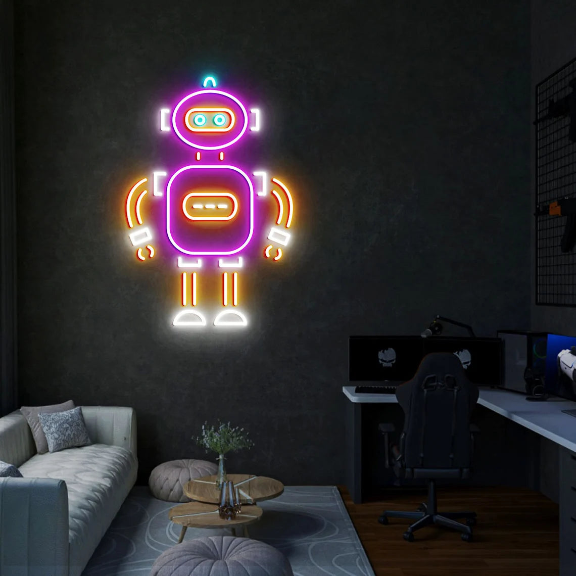 Robot Neon Sign is LED neon sign, It's made of acrylic and led stripe, safe and durable to use in bedroom, living room and other space, A great addition for bedroom decor